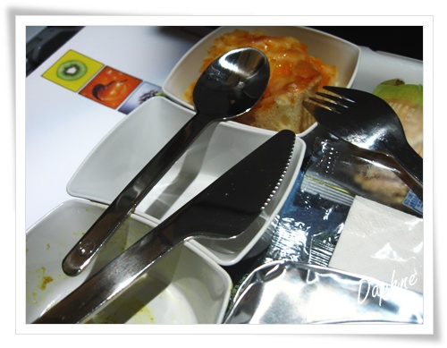 關於漢莎航空,幾次都很想污走他的餐具,居然是不鏽鋼製品耶,感覺好像在商務艙 ^^|||