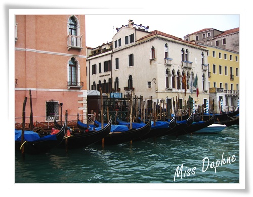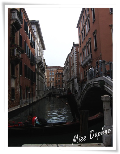 Gondole穿梭在狹窄的零星小運河裡,貼近百年建築,浪漫但很貴,1小時約100歐