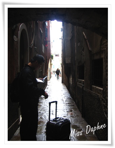 威尼斯都是這種小巷;烏龜正在看B&B的路徑指示中
