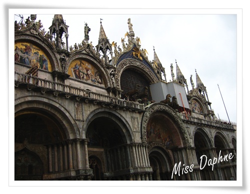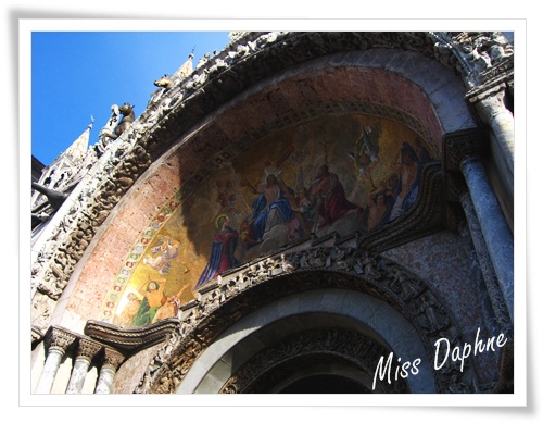 我們沿著廣場繞完整個ㄇ字型的店家與餐廳後,決定進入聖馬可方形教堂;