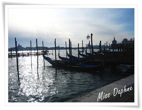 經過近兩小時的短暫停留後,我們終於搭著小型飛機,肚子一路癢地癲波到威尼斯。