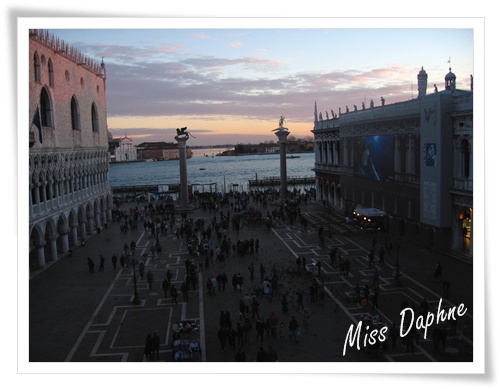 在教堂短暫停留不到半小時,我們又再度享受沉靜在黃昏中的威尼斯...