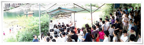 這邊的"漂流"講的就是台灣的泛舟,平穩的水流伴著兩旁森林美景,想到就很涼快!