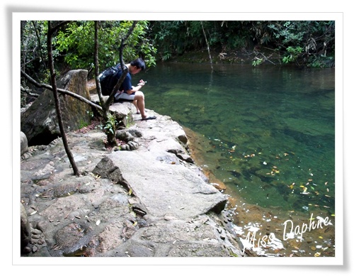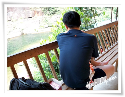 於是,兩人在漂流等候區看台耐心等胡導把大家送上皮艇,再帶我們去看瀑布。