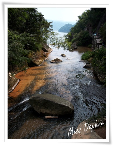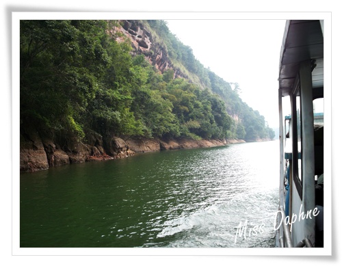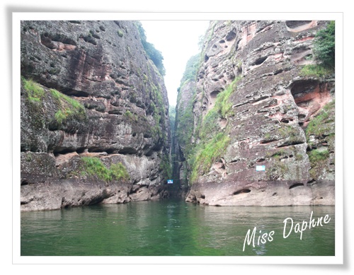 這是大金湖景點第一處,船夫在石壁凹處把我們放風,沿著山壁小路到達導遊口中說的表演,