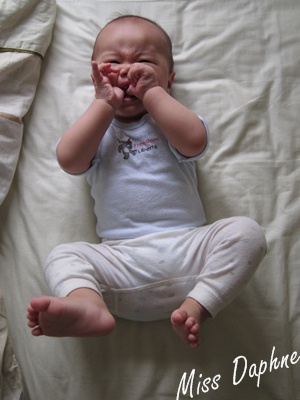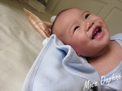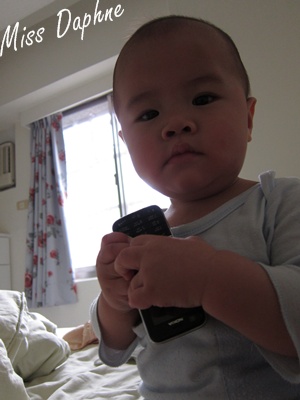 (9m7d) 侖:媽~妳手機鬧鐘響很久囉,該起床泡奶了吧!