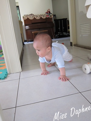 只不過他還是不用膝蓋爬,老媽說他的爬姿真像一隻蜥蜴^^|||
