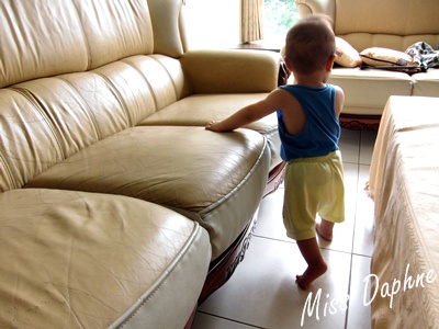 除了站之外,開始邁出他的步伐體驗用腳丫子走路的感覺,