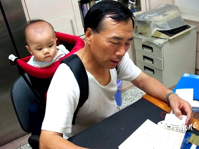 不過短短的幾分鐘路程他卻抱得氣喘呼呼~於是,決定他也要買阿公用背巾!