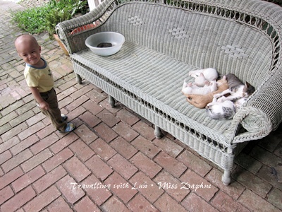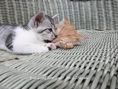 在門口處歡迎我們的是出生兩個月的小貓,但愛他們的媽媽三天前被狗咬走了,