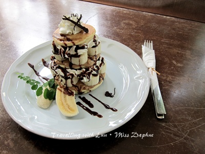 再來盤令人回味的巧克力香蕉花生鬆餅,鬆餅+2杯咖啡=300元的套餐很推薦~