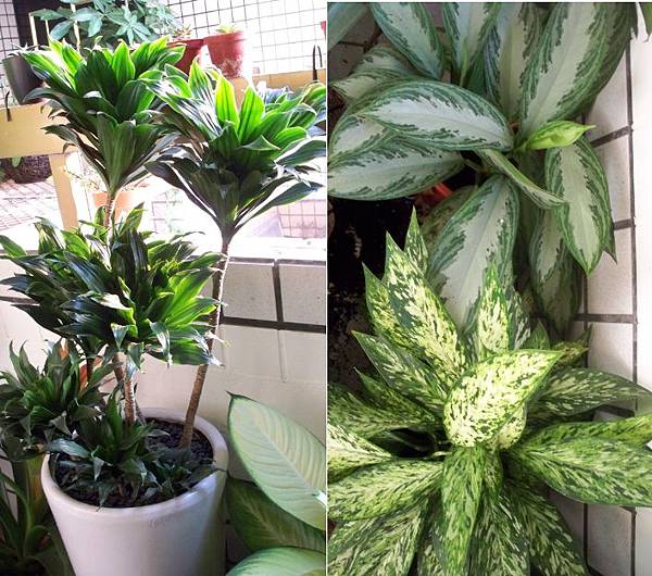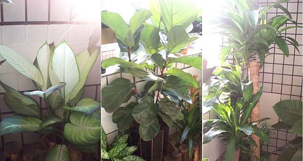 就是耐陰植物怎麼種都死不了, 而且還活得很漂亮, 像是巴西鐵樹, 帝王蔓綠絨, 阿波羅, 富貴樹, 金門榕, 琴葉榕, 馬拉巴栗, 還有一些長得像黛粉葉, 粗助草之類的