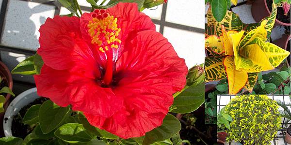 最後, 還是把一些越長越糟糕跟開不了花的盆栽搬到社區頂樓上種, 果然一兩個禮拜後, 藍雪花開了滿滿藍, 沙漠玫瑰開了滿滿紅, 變葉木黃得發光, 香水樹跟金露花從快到掛掉到長出一堆新葉子...