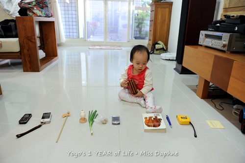 阿侖前場暖身完後,重頭戲來了,我們把各個物品來出來,分別幫他們指定其意義,比如說抓到錢包就代表祐祐一生都很有錢,抓到青蔥代表祐祐聰明,抓到筆代表以後文筆流利或者美術有天份等等...
