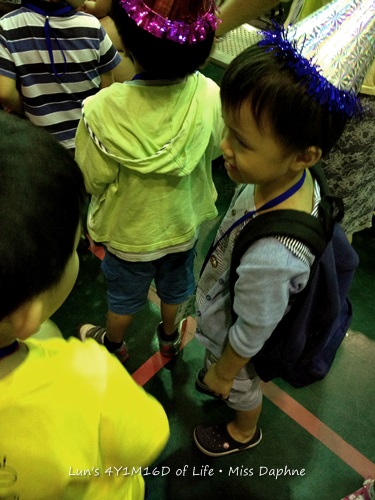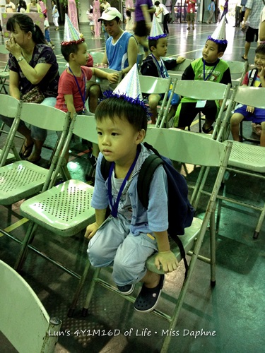 看到這麼多小朋友與家長,阿侖害羞的本性表露無疑,拍照擺pose都放不開,跟外公說bye bye後,我們母子兩便就坐等著開學典禮開始。