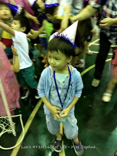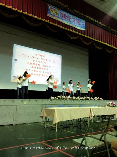 典禮上除了例行性地重要長官演講外,學校的彩虹媽媽團隊更為了消減小朋友的緊張,在台上又唱又跳,連帶的也一起要台下的家長與小朋友們跟著跳。當然放不開的阿侖手腳肢體很僵硬,反而為了讓他放輕鬆的老媽我跳得比他還要開心...