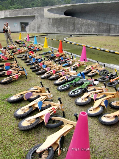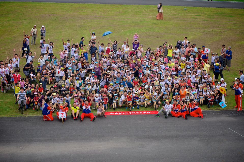 根據陳媽估算,這天集合了104人push bike小騎士,還有包括非酷騎的小選手喔!加上小選手父母與志工人員,已經超過了400人。大家集合在一起讓辛苦的芊爸來張大合照後,大會依照組別分別鳴槍開跑,這時天空也灑下雨花,爲這些有活力的小騎士們來個加油鼓勵。還好雨勢不大,不到三分鐘就收手,還好老媽我也忘了帶傘,不然後續還背著雨傘走3.2km也是個不小的負擔啊!
