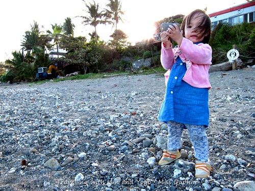 上面那段話有些嚴肅了,回歸到白石牛的這片海景,這不是白石牛獨享的,附近的居民也會帶著孩子們來這邊玩水玩沙,對於第三次來海邊的阿侖也不怕了,膽子也跟著阿侖長大了。於是跟著爸媽踏浪後,阿侖開始與海水玩沙。而妹妹呢?!則是遠遠地望著我們,靜靜地撿石頭丟石頭。
