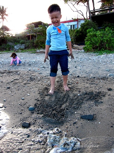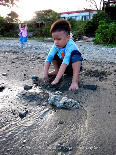(阿侖一直嚷著還要下去玩,傻孩子,晚上已經慢慢在漲潮了呀!)