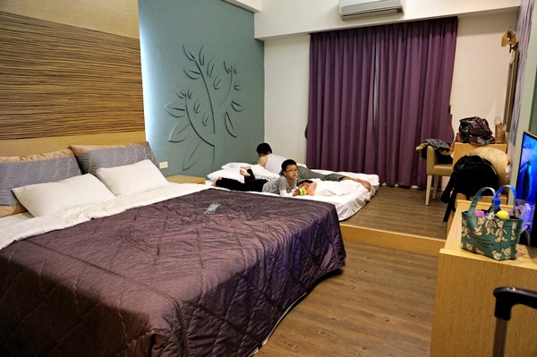 這天「妞妞與夢卡溫泉旅館」被我們全包了,我們一家四口住的是四人房,除了有兩張基本的雙人床外,最吸晴的就是浴室那個大浴缸啊!