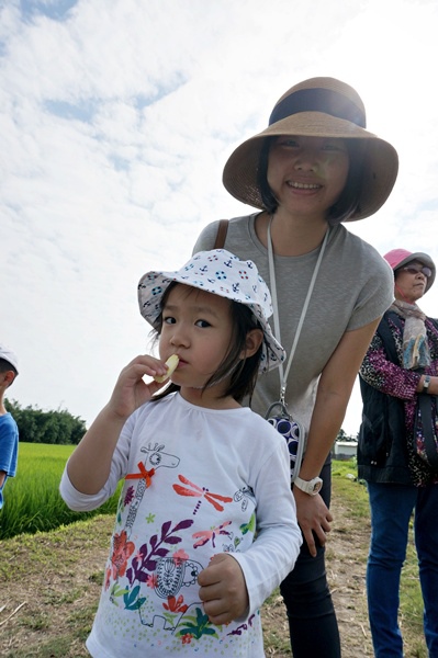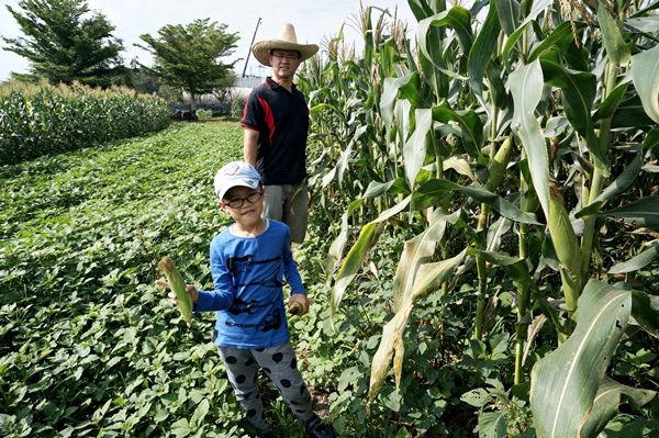 飽食有機玉米過後,接下來就要自己收成囉!大人小孩一一挑選上等的有機玉米,跟著曾先生的步驟將玉米由上往下扳,再轉個頭即可順利摘下,大家可是豐收滿滿!