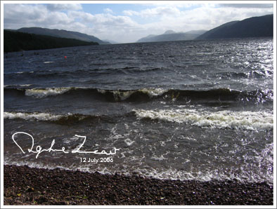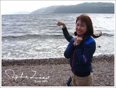 因為尼斯湖由整排山群環繞,風向關係造成湖面滔滔不絕,連整個人都被吹的亂七八糟,