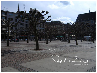 進入羅馬區的廣場;廣場中有許多不知名可愛的樹