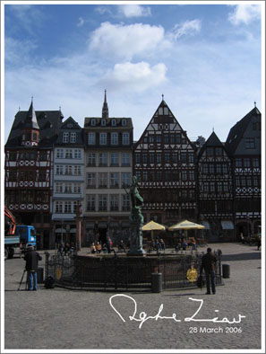 舊市政廳Römer前的廣場及對面可愛的旅館和商店