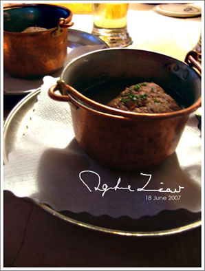 混合碎豬肉與不知名香料而成的豬肝球,加上略鹹的豬肝湯,