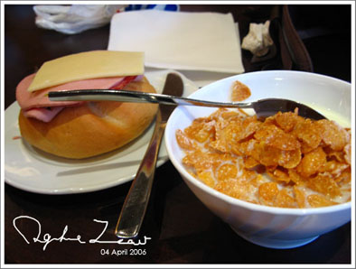 德國住宿附的早餐不外乎就是火腿夾德國麵包、麥片加牛奶…