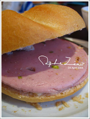 每天吃飽以後,照慣例也一定要幹走一兩個火腿夾麵包,以節省午餐費。