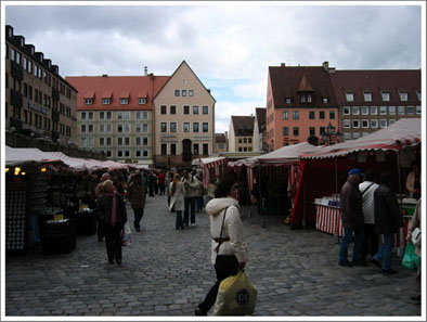 在聖羅倫茲教堂和聖母堂前的廣場聚集了各類的攤販,