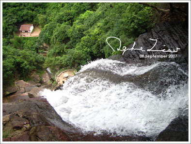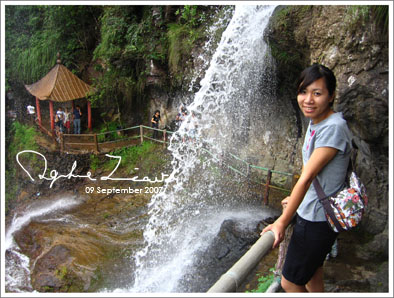 終於,我們爬到"石龍瀑布群"的最頂端,"鴛鴦亭";