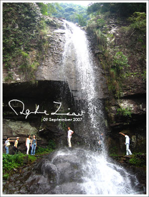 這是"石龍瀑布群"的最下面一段,位在九天瀑布的背後,